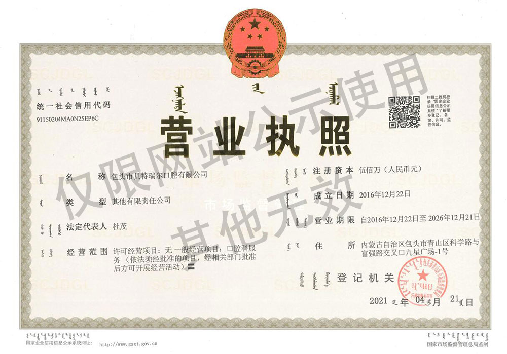 包头市贝特瑞尔口腔有限公司 ,于2013年正式入驻包头地区,目前已在昆区神华酒店东侧、青山九星电子大楼一楼、青山光辉假日酒店对面、昆区包百都市豪庭底店,昆区校园路东亚世纪城文脉苑东南角开设五家门店,拥有中高级职称医技人员、专业服务保障人员近百人。 医院经营管理中始终贯穿TQM(全面品质管理)竭诚为顾客提供全面化、个性化、家庭化的口腔美容、牙齿种植、牙齿正畸、牙齿美白、牙齿修复以及儿童齿科等专业化服务,坚持“专注细节、客户至上”的服务理念,精雕细琢、塑造完美,服务于广大爱牙人士及社会各界精英。